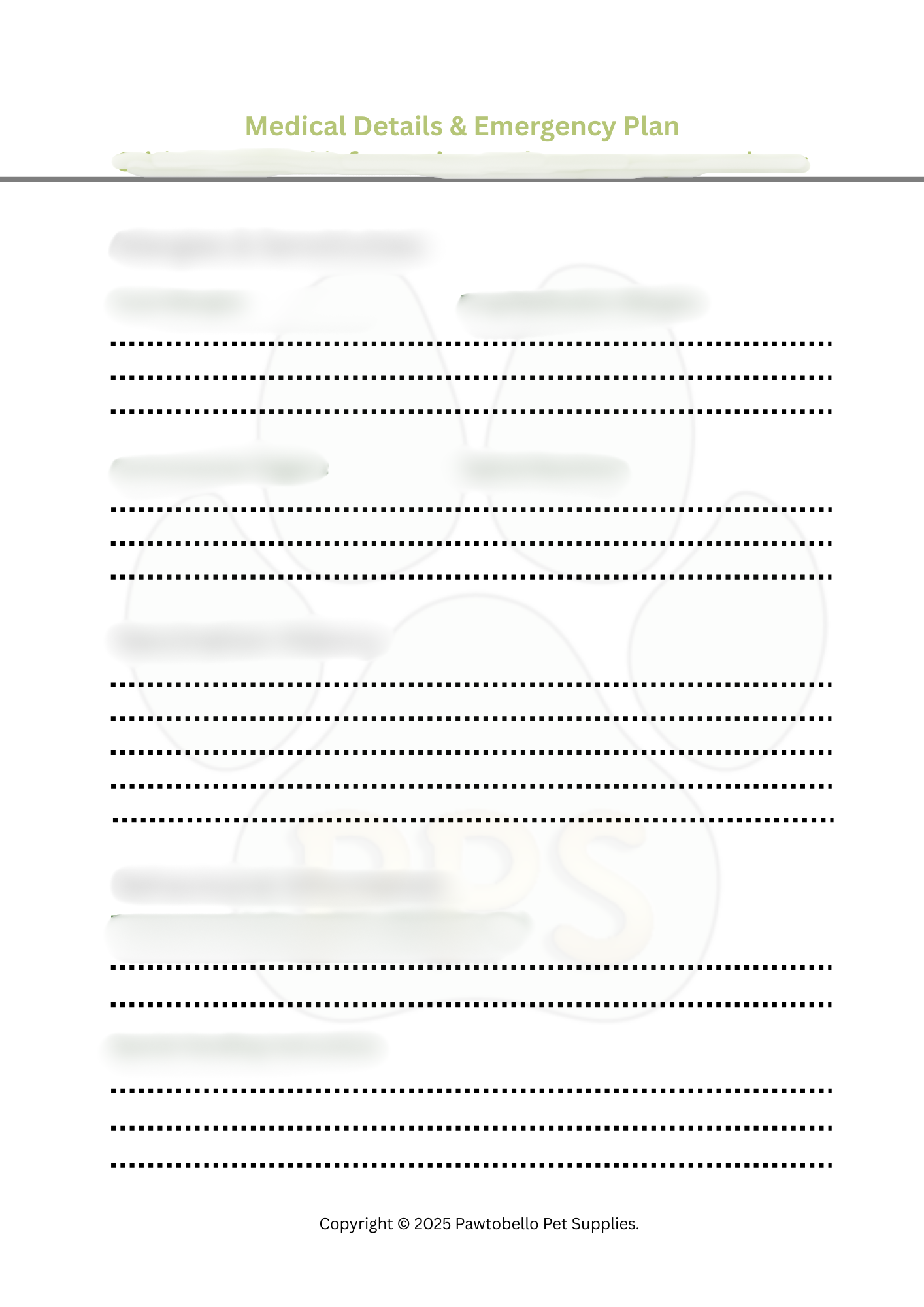 Page 3: Medical Details Essential medical information to help inform emergency responders or veterinarians of your pet's specific needs.